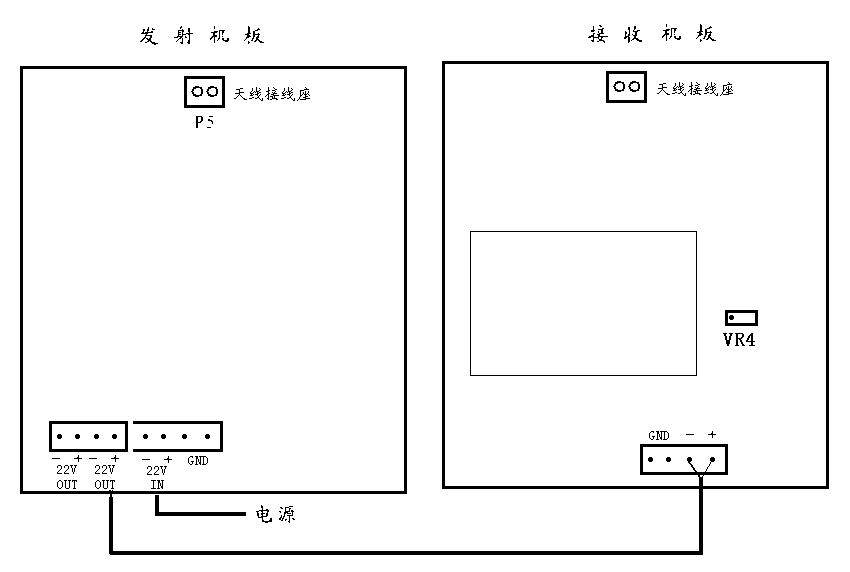 ① 將主機從包裝內取出,將電源線接到墻壁的220V/50Hz的電源插座上。(要確保有地線,否則儀器可能工作不穩定)再把通道的發送線和接收線連到主機后面對應的端口上,將固定螺絲擰緊。。(主機放置在離通道1.5米以上的距離)